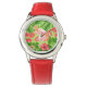 Montre Flamant rose et plantes tropicaux