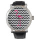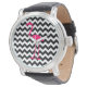 Montre Flamant rose rose vif Zigzag noir et blanc