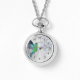 Joli colibri vert et coloré avec des fleurs de cerisier bleu blanc sur un arrière - plan en feuille d'argent. Les mignons numéros regardent.