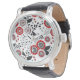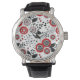 Montre Fleurs de gribouillis et feuilles en rouge et noir