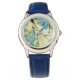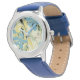 Montre Fleurs rétro (bleu et jaune)