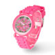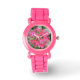 Cette superbe montre présente une photo détaillée d'une bande de belles fleurs tropicales rose vif, entourées de feuilles vert foncé. Ces jolies fleurs forment un cercle au milieu. La photo a été prise en utilisant la macro photographie pour un résultat détaillé.