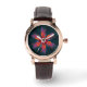 Floral Mandala Fleurs Orange Rouge Bleu Abstrait Montre d'Art