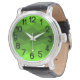 Cette montre pour hommes a un design géométrique de cinq nuances de vert courant horizontalement.