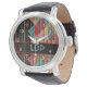 Une montre à la fois sophistiquée et élégante avec mon design original de rayures sur triangles multicolores et des exemples d'initiales pour vous de customiser avec les vôtres.