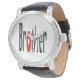 eWatch avec bracelet en cuir Vintage noir rond visage grand imprimé noir et rouge "Frère" Joyeux Jour des frères, pour lui anniversaire,