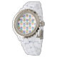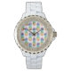 Montre femme motif aux fruits d'ananas tropical personnalisé. Une idée cadeau de luxe pour les femmes et les filles. Personnalisable avec son nom. Élégant modèle de typographie de script pour nom, monogramme ou citation. Faites votre propre pièce unique de luxe. Design élégant avec une image arrière - plan fruitée et numéros de cadran. Cadeau classique pour Anniversaire, Fêtes de Noël, Doux 16, remise des diplômes, mariage etc. Acheter pour femme, petite amie, soeur, mère, maman, amie, cousin, tante, grand-mère, fille etc. Accessoires pour dames chic avec imprimé d'icône arc-en-ciel exotique.