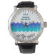 Elégante et aussi amusante montre de retraite à personnaliser avec une date et les initiales de la personne retraitée. Les numéros sont tombés dans un saut au bas du cadran car vous n'avez pas vraiment besoin de vous inquiéter du temps après votre retraite. Il y a aussi une image de mer / ondes océaniques sur le cadran pour les personnes qui aiment la plage et peut-être se déplacent près d'une. Vous pouvez le laisser tel quel, le supprimer ou le modifier avec l'un des vôtres.