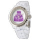 Un joli design avec un gâteau mariage violet à trois niveaux aux accents floraux.