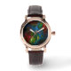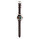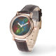 Genèse Bleu Art Abstrait Parfait Carré Montre en Cuir Brown