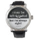Je suis peut-être gaucher, mais j'ai toujours raison ! - Drôle et humoristique de dire avec une attitude sur la gauche.