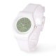 La partie principale de cette surface montre une photo détaillée en gros plan de la texture rocheuse verte. Il y a 5 variations de couleur. Un cercle blanc métallique brillant embrasse l'image centrale. Cette version n'a pas de chiffres, car ils sont déjà sur les détails de la montre. Voir d'autres versions de KreaturRock.