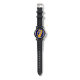 Montre souvenir irlandaise ornée d'un motif de harpe irlandais doré, contre un arrière - plan bleu foncé.