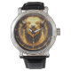 Montre Golden Taurus Bull Within a Circular Zodiac Wheel