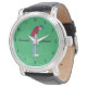 Montre à poignet vert design à thème Golfer avec texte personnalisable.