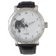 Portrait animal en noir et blanc de loup gris Canis lupus. Une montre élégante pour tous. Personnalisable . Vous pouvez modifier ou supprimer le texte sous l'image. Vous pouvez transférer cette conception à un autre produit de votre choix, il suffit d'utiliser une option à droite de cette description.wristwatch