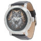 This black-band watch showcases a captivating gray wolf portrait. It is designed to appeal to enthusiasts of wildlife, nature, and wolves. This piece is an AI art creation by Susang6.