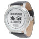 Cadeau Mariage personnalisé avec nom et date.Offrez à votre marionnettiste un cadeau intemporel avec cette montre-bracelet personnalisée comportant une typographie audacieuse, un graphique de cravate arc, un nom et une date de mariage personnalisés. Avec son bandeau en cuir noir classique et son boîtier en argent propre, cette montre est un garde-robe élégant et sentimental parfait pour remercier votre équipe mariage. Qu’elle soit portée le grand jour ou gardée comme un souvenir précieux, cette montre personnalisée de toiletteur est une façon réfléchie de montrer sa reconnaissance pour son soutien et son amitié.
