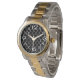 Cette montre pour hommes a un design art déco de demi-cercles blancs reliés aux lignes sur un champ de noir.