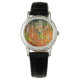 Montre présentant le tableau de Gustav Klimt, Ferme avec bouleaux (1903). Un paysage automnal de feuilles orange dans une forêt de bouleaux avec de belles fleurs bleues. Un cadeau merveilleux pour les fans d'Art nouveau et d'art autrichien.