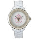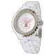 Cette montre impressionnante présente une image graphique d'un cerisier recouvert de fleurs roses et entouré d'un cercle de jolies fleurs de cerisiers connu sous le nom de Sakura. Ce dessin a été créé pour célébrer le festival japonais Hanami et contient le mot Hanami dans le cerisier. La fête marque le Printemps alors que les gens se rassemblent pour pique-niquer sous les cerisiers en fleurs.
