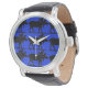 Répétez le motif d'orignal noir sur un arrière - plan bleu royal, montré ici sur un visage de montre.