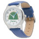 Montre Heart Boho Green Rainbow avec nom personnalisé