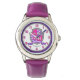 Nom de bruyère signifiant chevalerie heraldique qui protège les enfants montre au poignet. Bouclier style Chevalier lettre monogramme H art nom simple horloge numérotée visage parfait pour dans les tons de violet, rose chaud, blanc et gris. Personnalisez avec votre propre nom et nom signifiant pour un grand cadeau personnalisé unique, cet exemple est pour les noms avec la lettre H et lit actuellement Heather Beautiful flower. Autres éléments, lettres et noms correspondants disponibles. Dessin de bouclier unique, art graphique et design par Sarah Trett pour www.mylittleeden.com