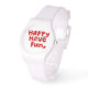 Very nicely made. The design is perfect. Comfortable and light watch. The plastic is nice and smooth and not rigid at all. Love it that you can see it at night! Excellent print quality. Even the small detail of text came out well.
