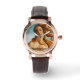 Montre vintage en or rose avec bracelet noir