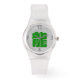 Idéogramme vert personnalisable du Dragon sur l'illustration découpée sur papier comme arrière - plan. Vous pouvez facilement modifier la couleur de l'idéogramme en cliquant sur le bouton personnaliser. Design on Silicone Strap Montre claire avec des numéros de style jeune. Parfait pour le Nouvel An chinois du Dragon ou Anniversaire (personnes nées dans l'Année du Dragon).