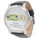 JAMAICA 60th Anniversary Independence, montre élégante et patriotique pour célébrer le 60th ANNIVERSAIRE D'INDÉPENDANCE DE LA JAMAÏQUE. Le design montre JAMAICA JAMAICA dans le célèbre drapeau jaune salé de JAMAICA avec 60 en gras typographie or et les années 1962 - 2022 en dessous en noir. Le texte 1962-2022 est PERSONNALISABLE, vous pouvez donc ajouter votre nom ou vos initiales, ou créer votre propre texte. Cette montre de l'indépendance de la Jamaïque serait un cadeau élégant pour les célébrations, les dîners et les fêtes des Jamaïcains patriotes - soit pour célébrer cet anniversaire important, soit pour célébrer cet âge ou cet anniversaire mariage. Cette montre jamaïcaine serait aussi une excellente marchandise pour votre événement spécial pour l'indépendance de la Jamaïque. Des articles JAMAÏCAINS et des idées cadeaux sont disponibles dans la collection JAMAICA AT 60 de la marque Berean Designs.