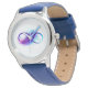 Infinity symbole with a beautiful feather painted in purple and blue bright colors on white background