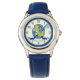 Lettre initiale J Jacob nom signifiant chevaliers style crête bouclier personnalisé enfants montre poignet. Bouclier style Chevalier monogramme lettre J nom d'art simple cadran numéroté parfait pour dans les tons de vert, bleu blanc et gris. Personnalisez avec votre propre nom et nom signifiant pour un grand cadeau personnalisé unique, cet exemple est pour les noms avec la lettre J lit Jacob porte de talon. Autres articles correspondants et options de nom et de lettre disponibles. Dessin de bouclier unique, art graphique, recherche de nom, rédaction et design par Sarah Trett pour www.mylittleeden.com