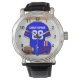 Montre Jersey de football bleu blanc personnalisé