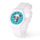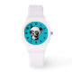 Une illustration mignonne et adorable d'un ours en panda noir et blanc assis et regardant heureux, amical et aimable. Arrière - plan bleu turquoise.