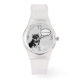 Un joli dessin de chien chiot (Shiba Inu) avec bulle de parole avec texte pour customiser. Design sur sangle en silicone Montre claire avec chiffres modernes et arrière - plan en stuc (image imprimée). Vous pouvez facilement modifier le texte en cliquant sur le bouton personnaliser. Parfait pour le Nouvel An Chinois du Chien ou Anniversaire (personnes nées dans l'Année du Chien).