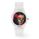 La mignonne Journée de la fille gothique morte montre un dessin unique d'un jour de la fille morte sur un visage de montre que vous aimerez donner ou obtenir en cadeau! Doté d'un beau motif gothique contre un arrière - plan rose va avec n'importe quoi et a l'air superbe avec la collection de Day of the dead mémorabilia.