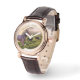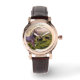 Montre vintage en or rose avec bracelet noir