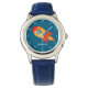 Bleu, fusée, espace, astronaute, bambin, attention aux enfants. Personnalisé, Enfants, Nom, acier bleu garçons montre. Personnalisez-le avec le nom de votre enfant.