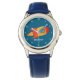 Bleu, fusée, espace, astronaute, bambin, attention aux enfants. Personnalisé, Enfants, Nom, acier bleu garçons montre. Personnalisez-le avec le nom de votre enfant.
