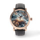 Montre vintage en or rose avec bracelet marron