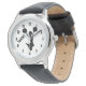 Montre élégante de pom-pom girl, avec la silhouette noire d'un pom-pom girl de saut contre un arrière - plan blanc. Numéros noirs représentant les heures et le texte noir personnalisé prêt à personnaliser avec le nom de votre pom-pom girl préféré. Ça fait une idée de cadeau.