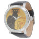 Cette montre présente une affiche emblématique de 1896 du peintre français d'Art Nouveau Theophile Steinlen, né en Suisse. "Conversation Noir" est français pour "chat noir".