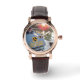Montre vintage en or rose avec bracelet noir