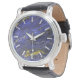 Lapis Lazuli faux motif en pierre de taille dans une couleur bleue profonde avec des veines de pyrite or et des flecks d'autres minéraux. Les marques de tiques en argent pour les heures contrastent avec l'arrière - plan bleu foncé.