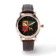 Montre vintage en or rose avec bracelet noir