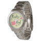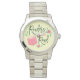 Parfait pour les amateurs de livres ; regardez l'heure avec cette montre avec les mots "Lecteurs qui vont lire" entourée d'un livre ouvert, roses et feuilles contre un arrière - plan jaune clair. *Veuillez noter que le filigrane Zazzle qui apparaît dans l'aperçu du zoom n'apparaîtra PAS sur le produit imprimé final. © Bookish and Wonderful