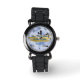 Cette montre bleue noire et ombre présente des chats partout dans le design. Le dicton dit : "Les Bonnes Choses Arrivent À Ceux Qui Écrivent." Parfait pour une écrivaine qui est aussi une amoureux des chats. Style Whimsical et amusant. De plus, personnalisez-le avec vos initiales.