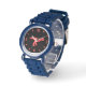 Montre-bracelet rouge, douce, avec un petit Carnotaure. Il ne mord pas. Il veut juste faire des câlins. C'est un beau cadeau pour les enfants qui aiment les dinosaures et les animaux de l'époque.